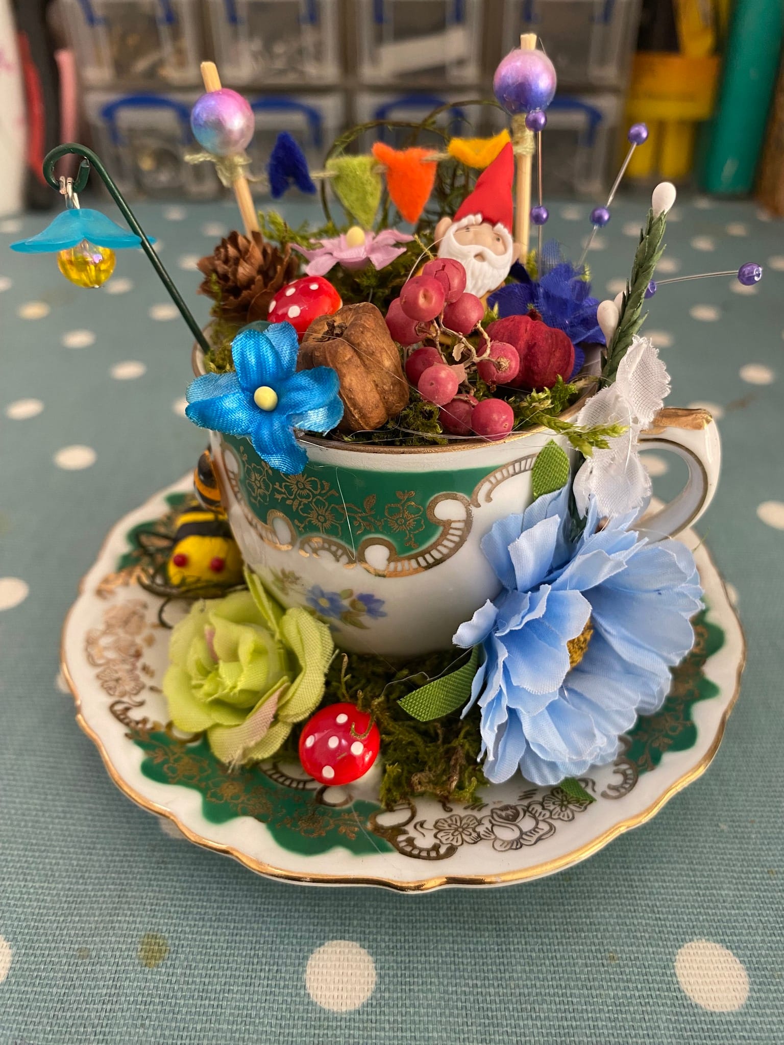 This relaxing, fun workshop is guaranteed to get you into the Christmas spirit. Join Fiona as she shows you how to transform a simple pre-loved t-cup and saucer into a miniature fairy garden. She simply is the queen of creating all things fairy like. Using a variety of natural and artificial decorations, you’ll make a unique piece of loveliness that would be a delightful gift in time for Christmas. You’ll also learn how to make simple teen tiny bunting and a lovely bead flower to add even more charm to your creation. Your ticket price will include a festive hot drink of your choice and a homemade mince pie. Tickets are £25pp and you can book your place on this workshop by emailing our events team: info@delamerestationhouse.co.uk