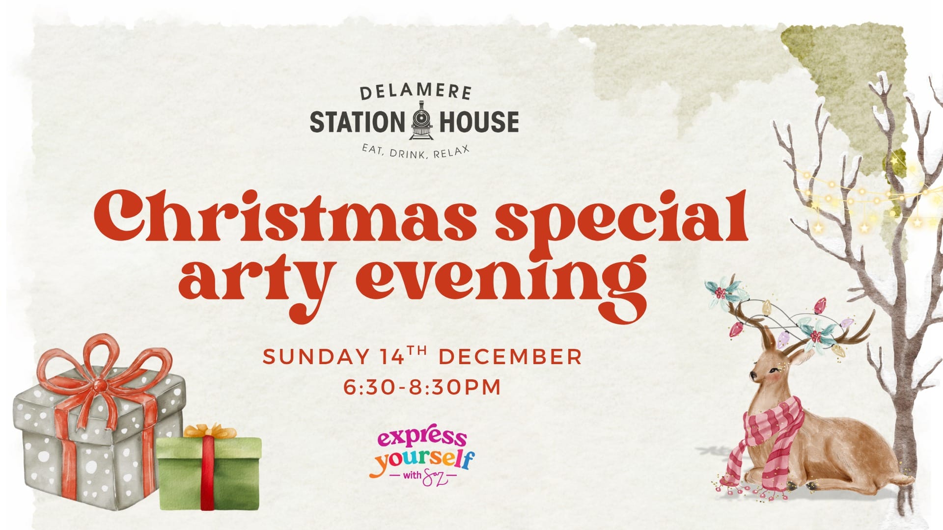 Each ticket includes a glass of prosecco or mulled wine and a festive homemade mince pie to savour while you create. Tickets are £65pp. Spaces are limited, so please book early to secure your spot. Tickets are non-refundable. We can’t wait to celebrate the season with you in a burst of colour, creativity, and Christmas cheer!info@delamerestationhouse.co.uk